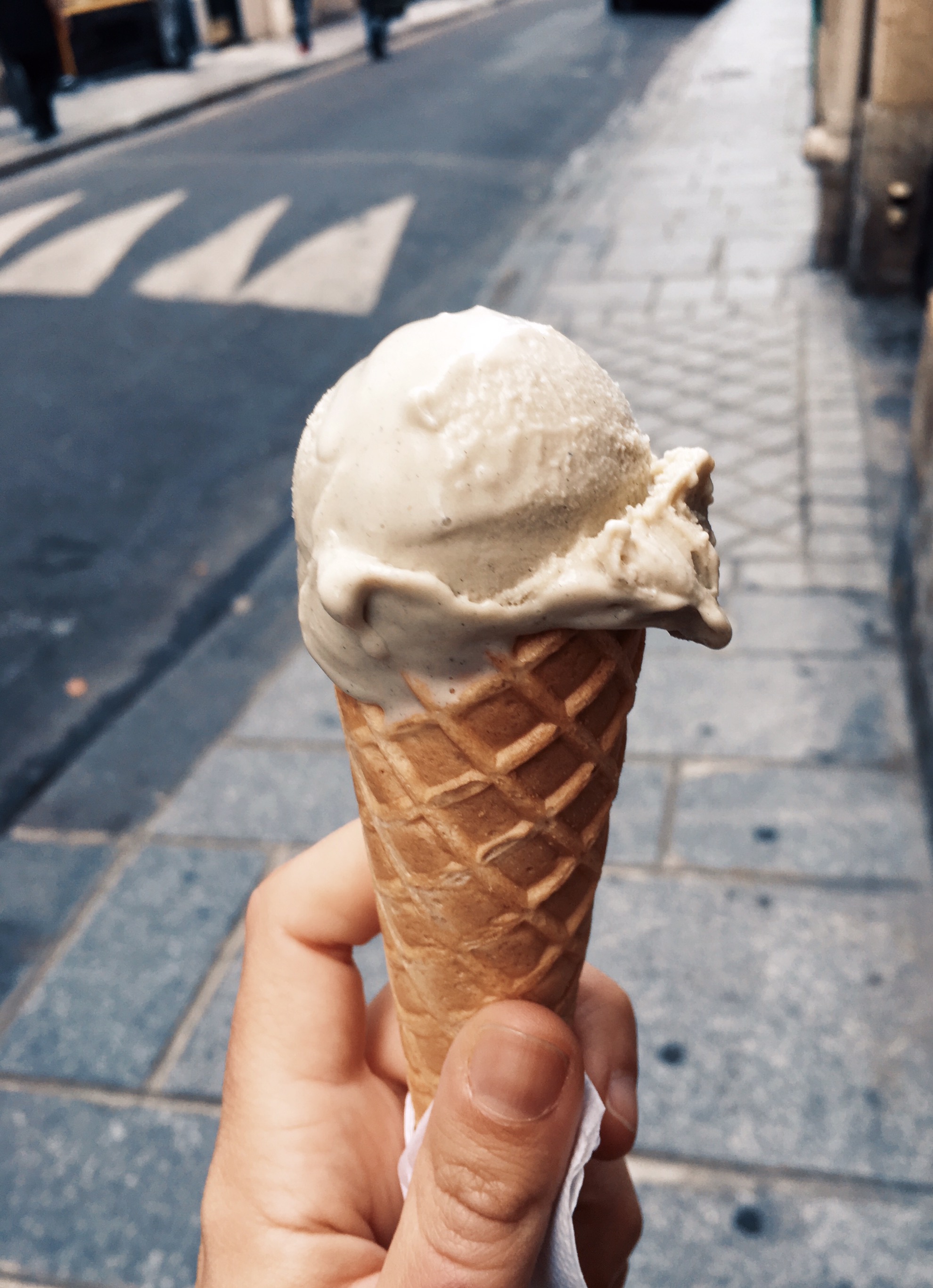 As I had finished the first week of using the app today – and as my mood was a bit shaky from all the wandering my mind inevitably does when I’ve been reading/studying for a while – I decided to take up the app’s prompt to ‘treat myself’ this afternoon. So I got an ice cream cone from Berthillon.