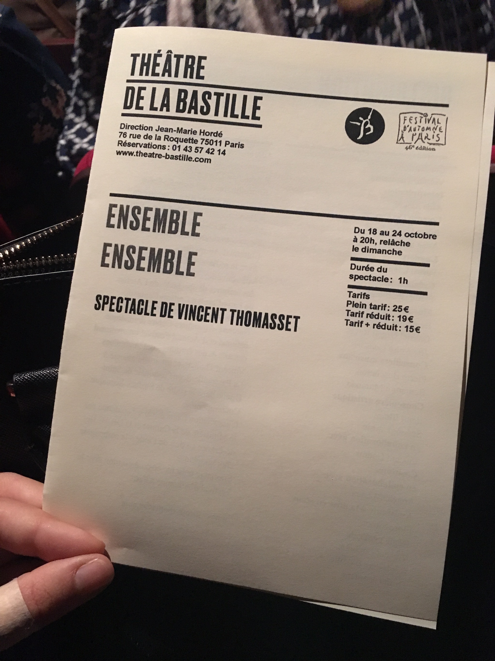 Tonight I saw another show, Tue, hais quelqu’un. It was fine. There was a point where they overlaid images of the actors over their bodies, which created a really cool painterly effect, further amplified when the actors began ‘manipulating’ their images through gesture.